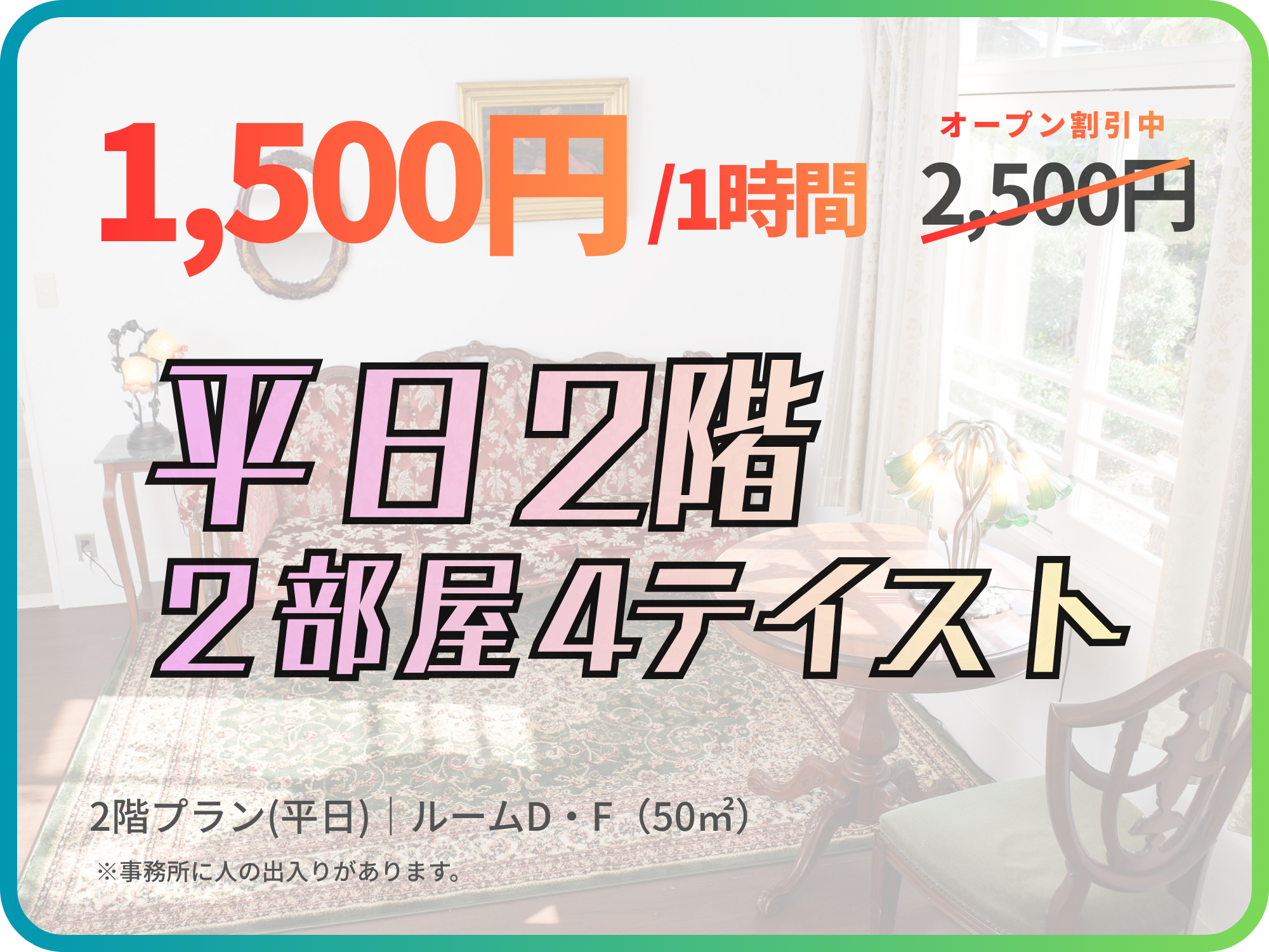 (ルームD•F) 約50㎡ | 2,500円 | 1,500円 | 13,000円 | 6,000円 | 28,000円 | - |